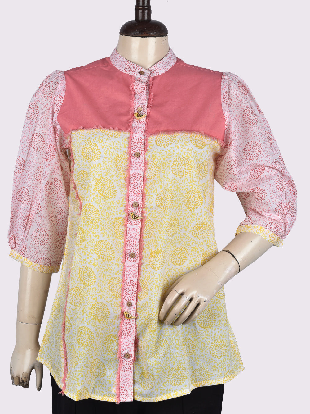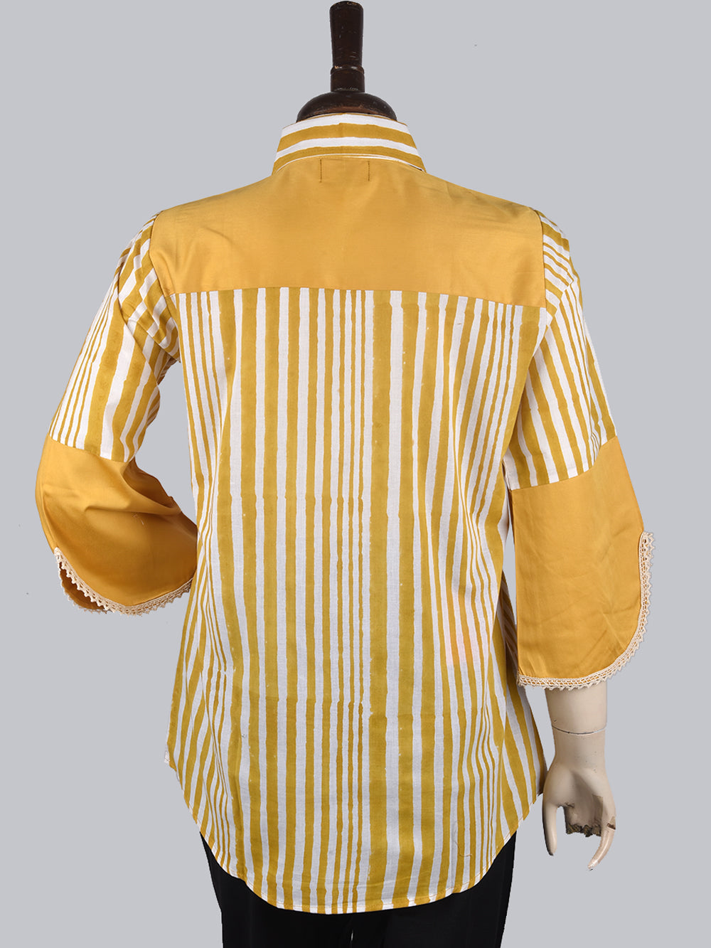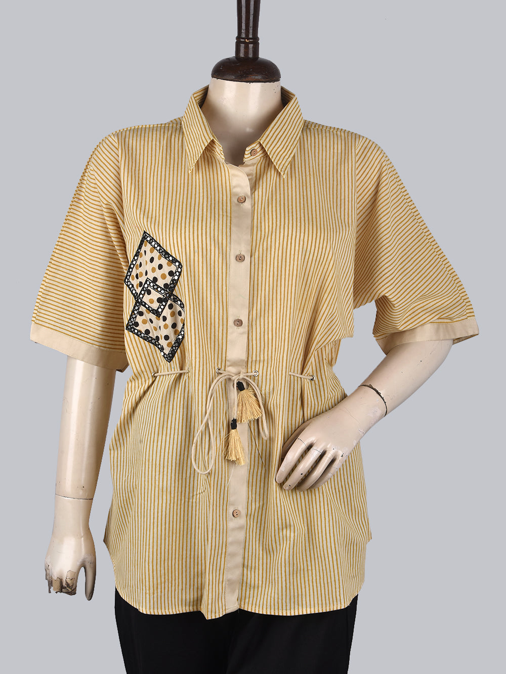 Bagru Yellow Jaal Womens Hand Block Printed Shirt Tops