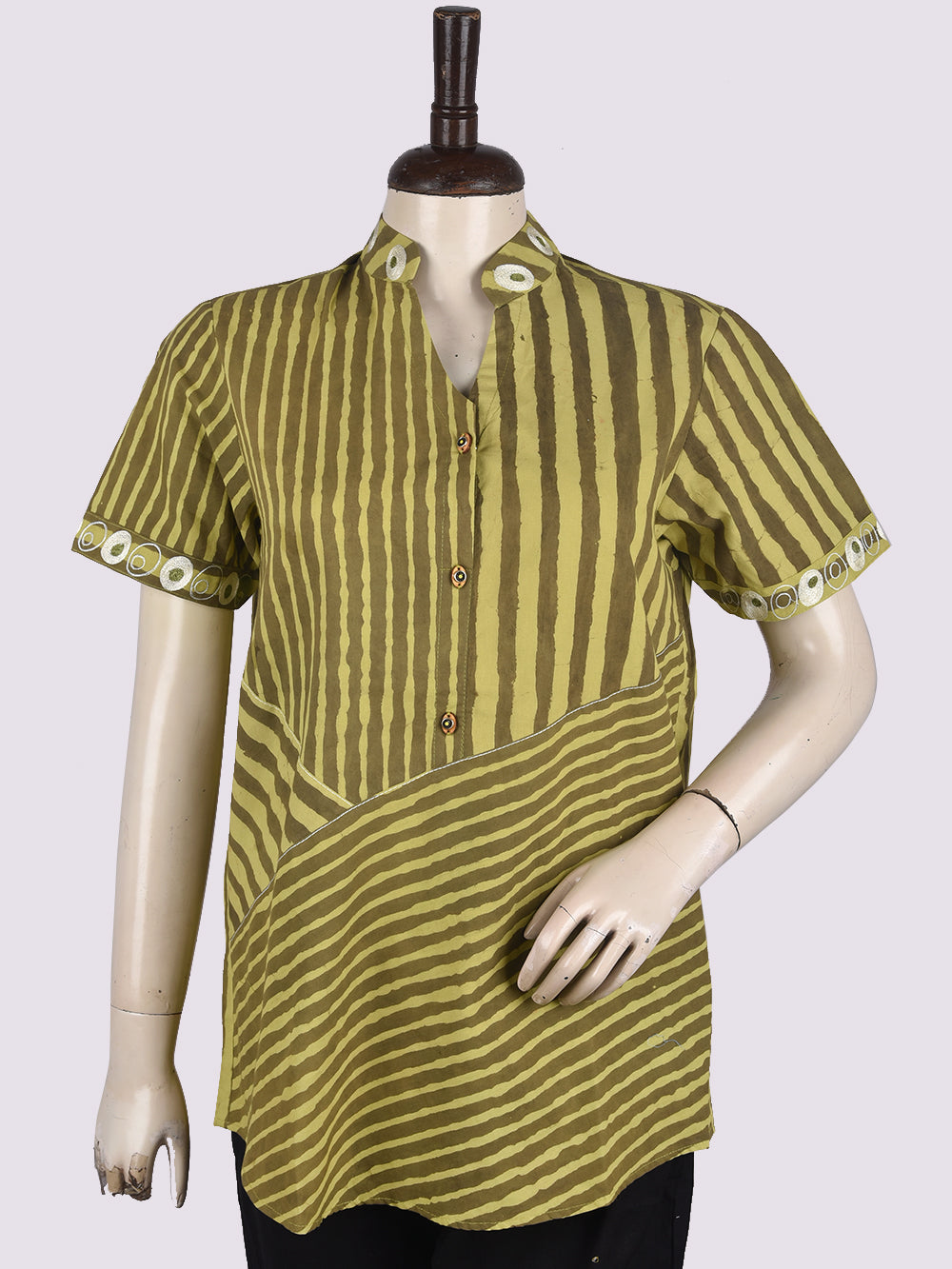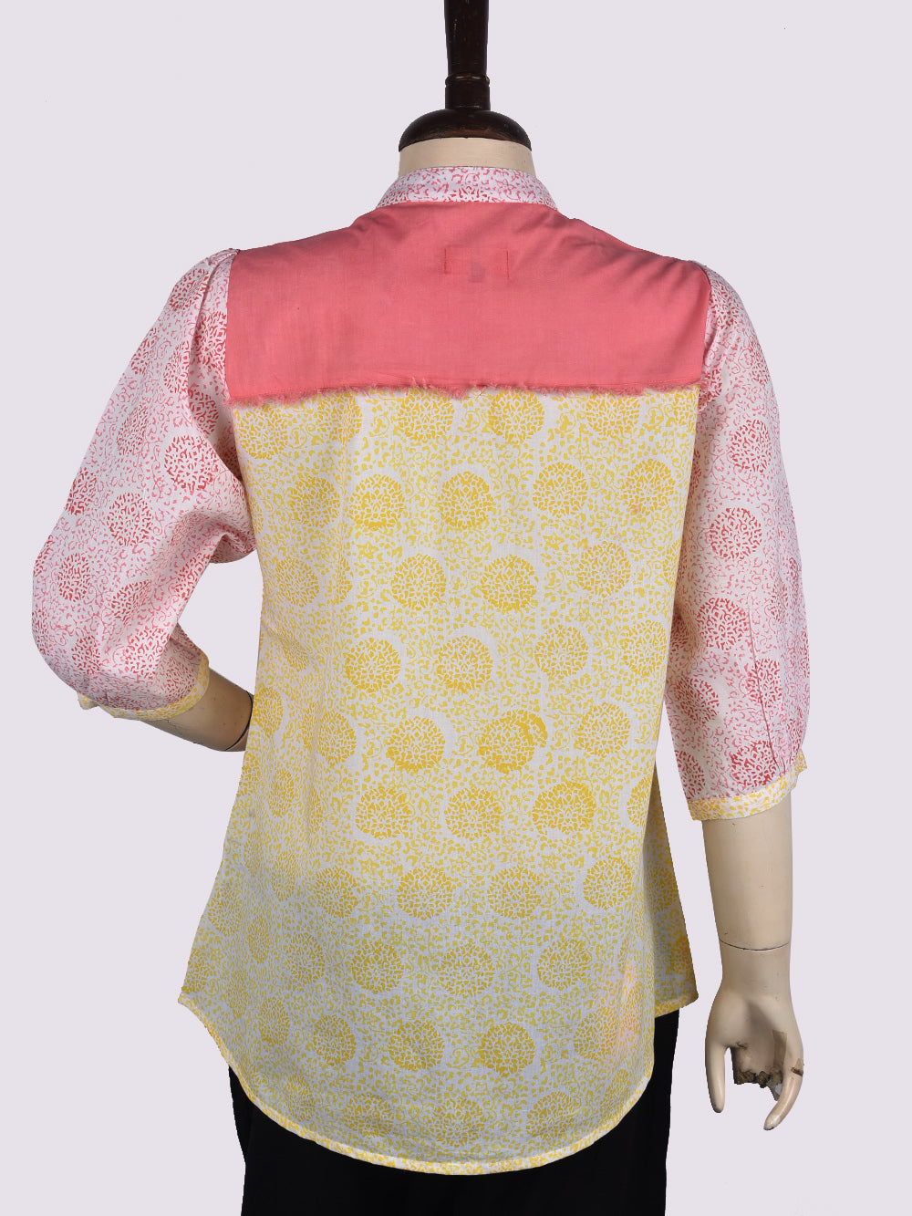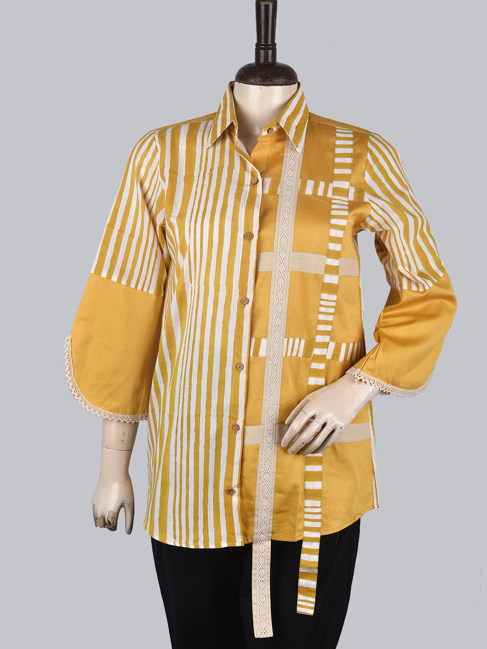 Bagru Yellow Jaal Womens Hand Block Printed Shirt Tops