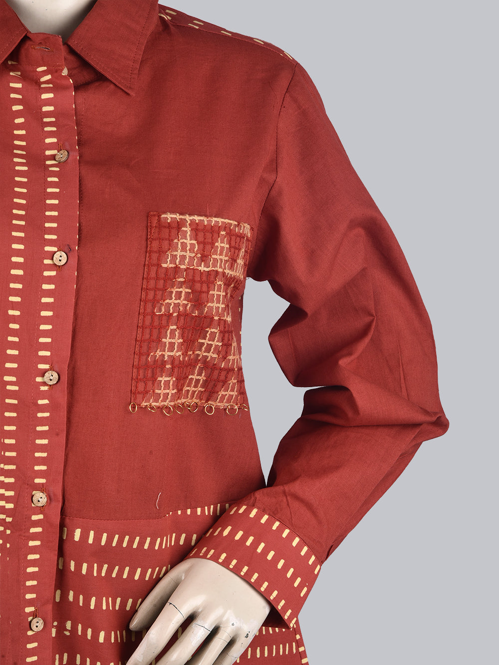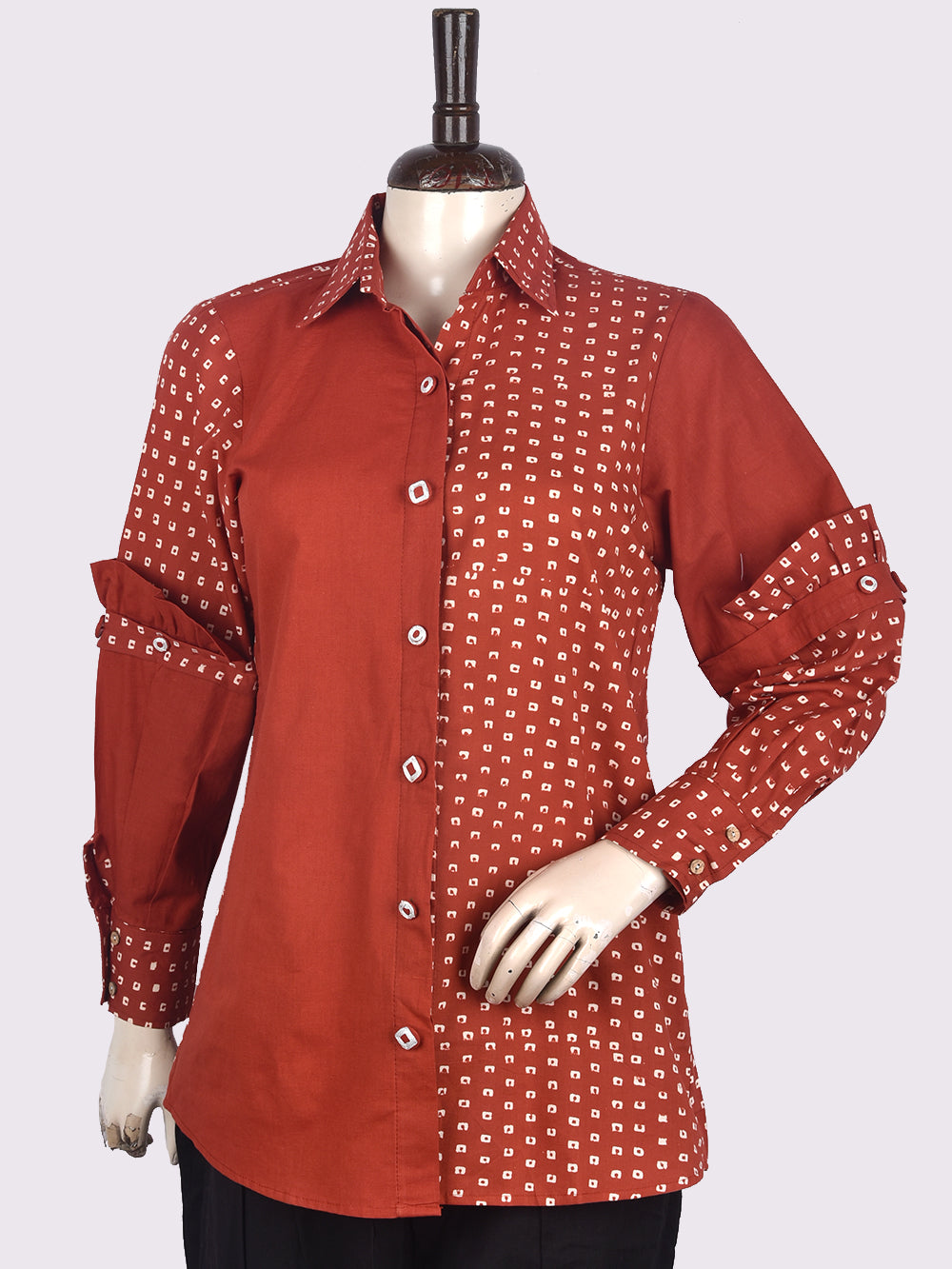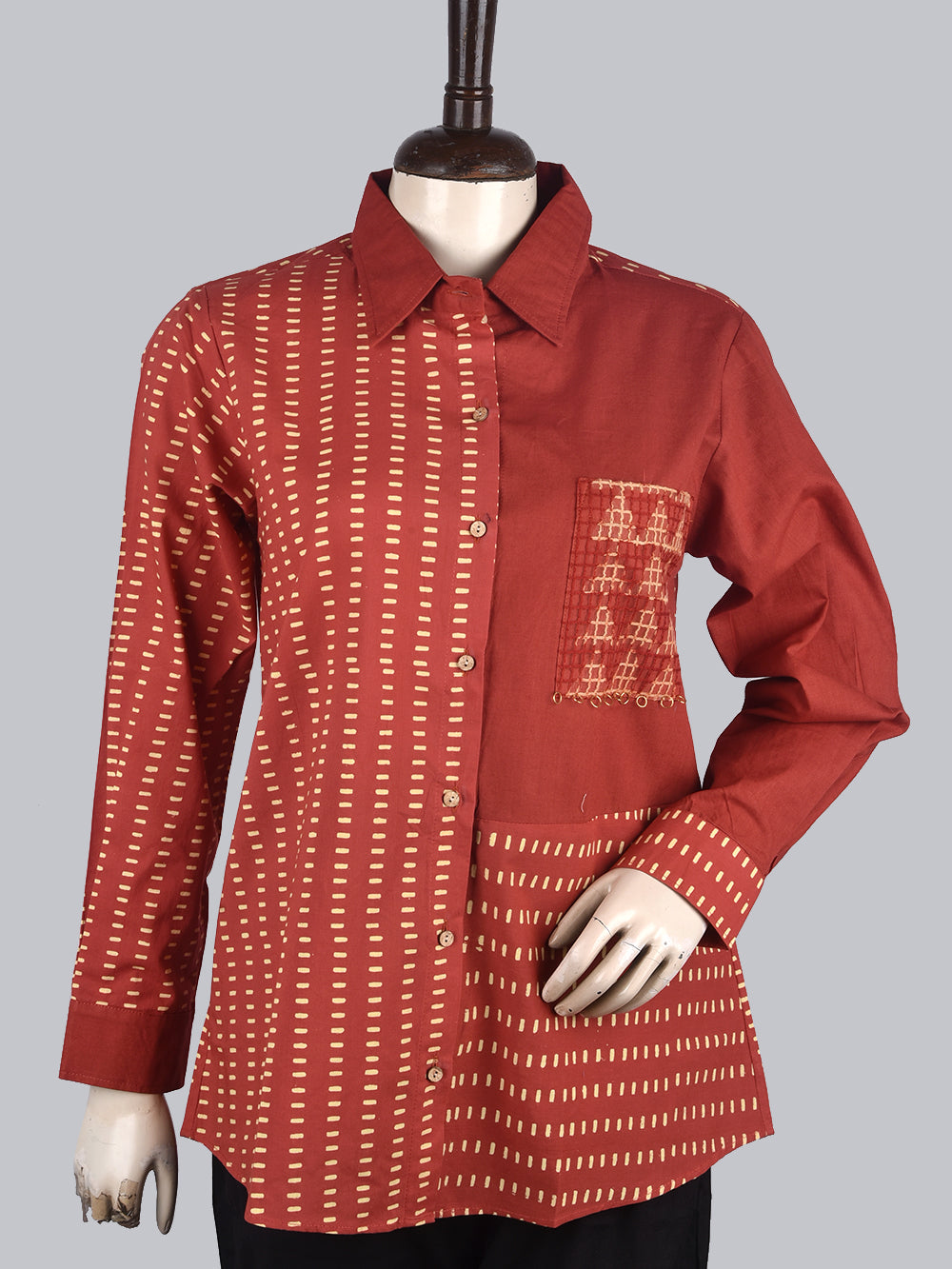 Bagru Red Jaal Womens Hand Block Printed Shirt Tops