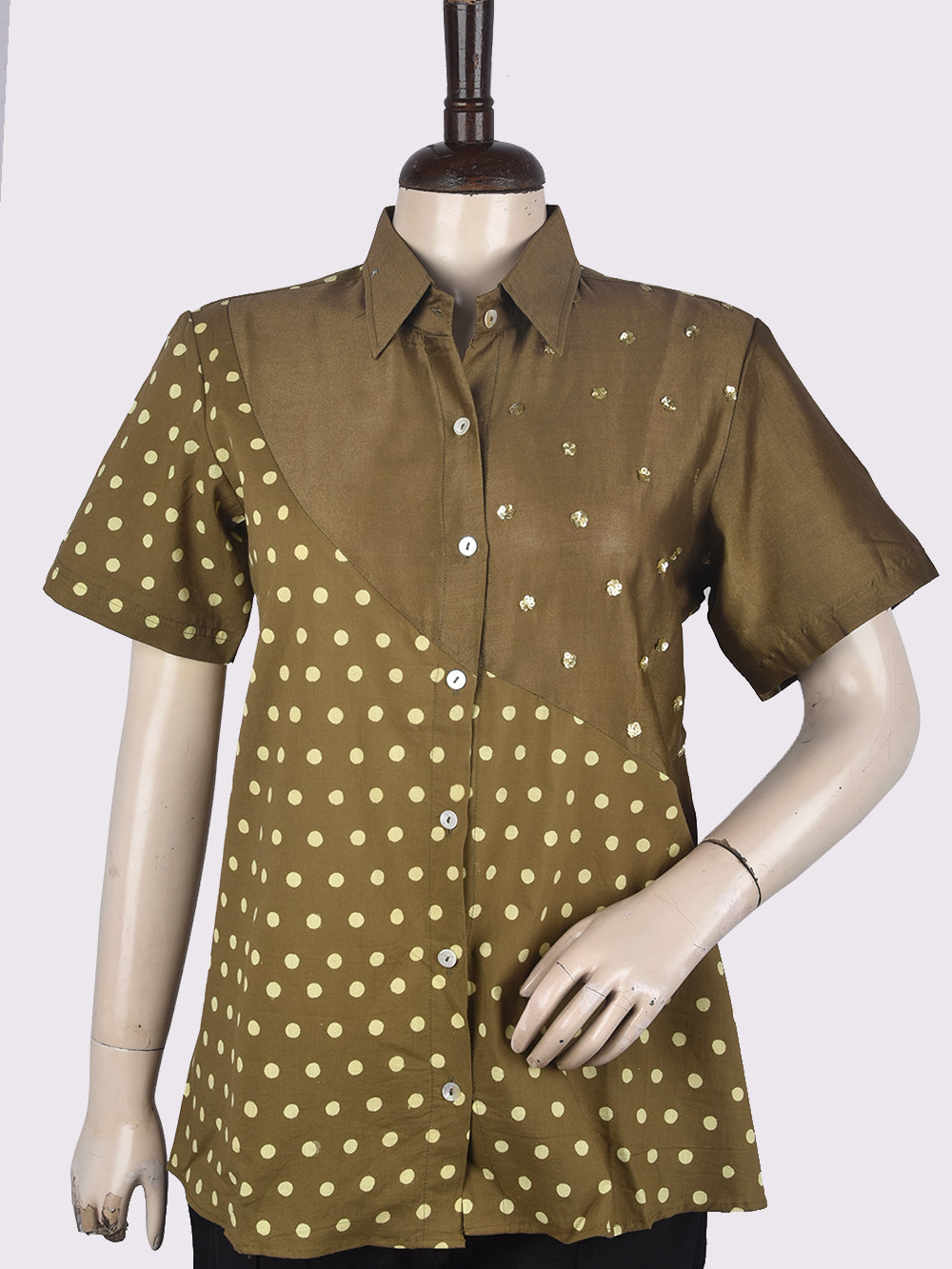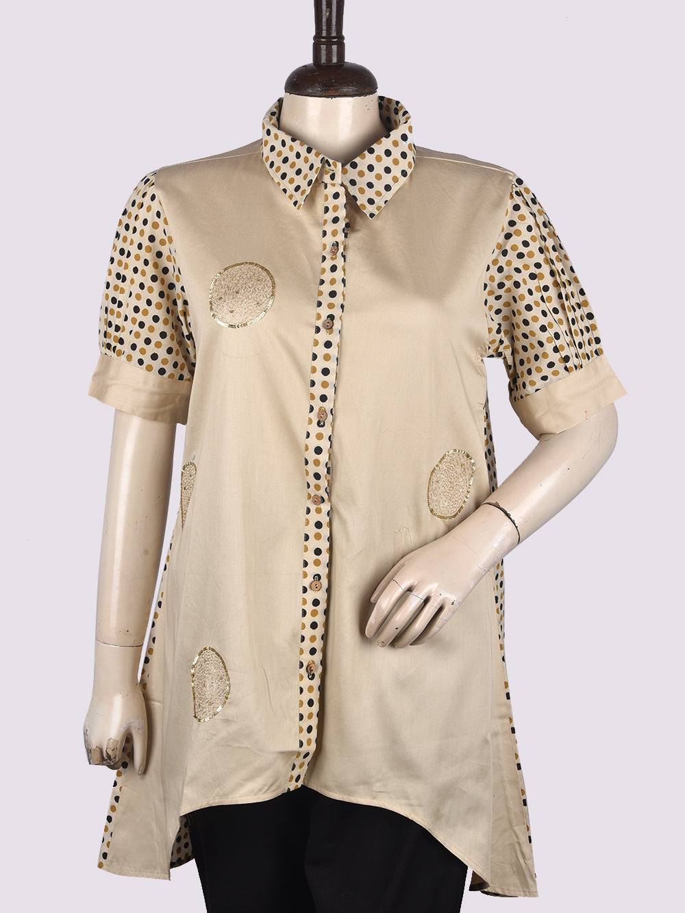 Grey Polka Dots Womens Hand Block Printed Tops