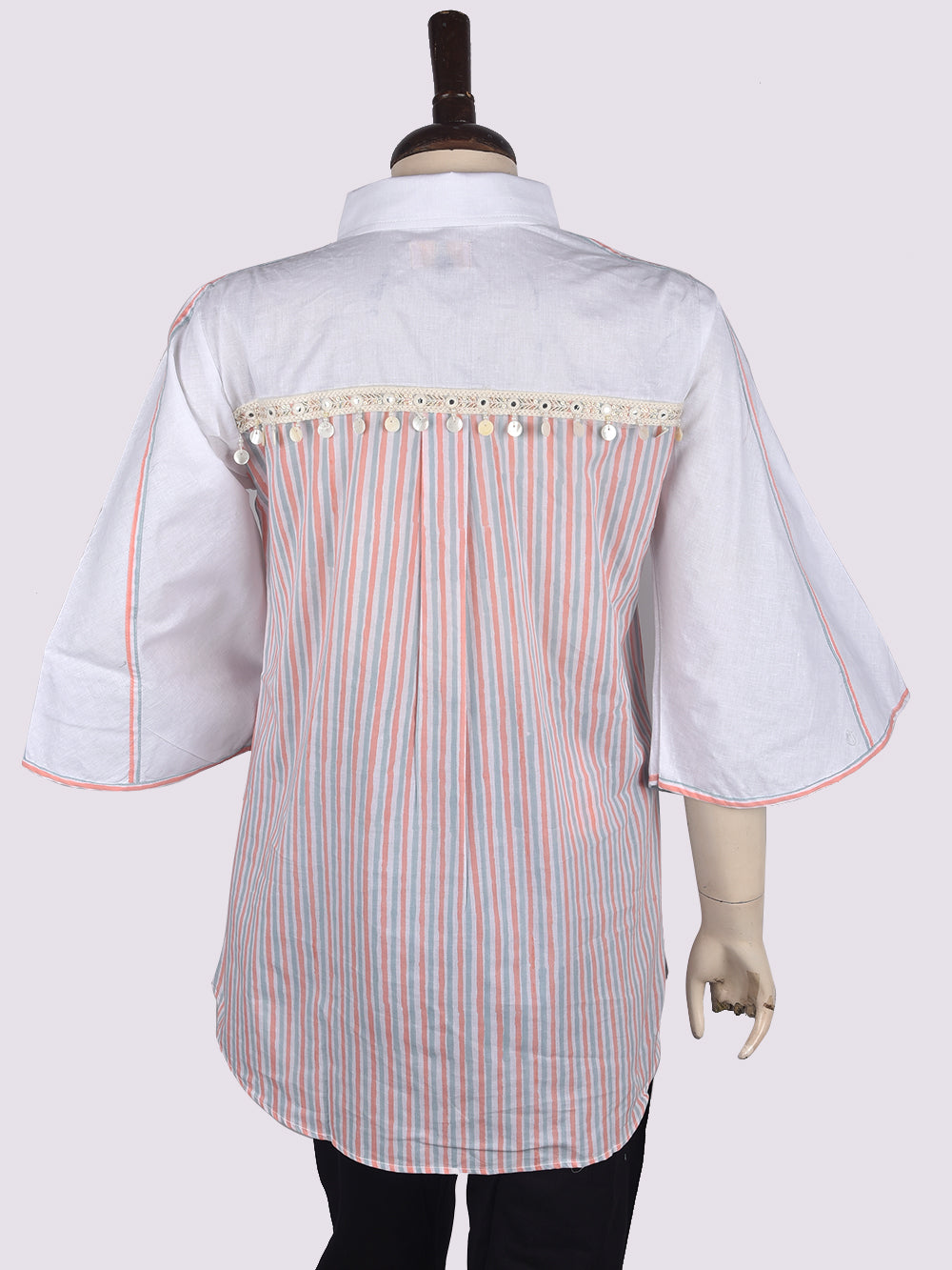Daboo Grey Kasis Stripes Womens Hand Block Printed Tops