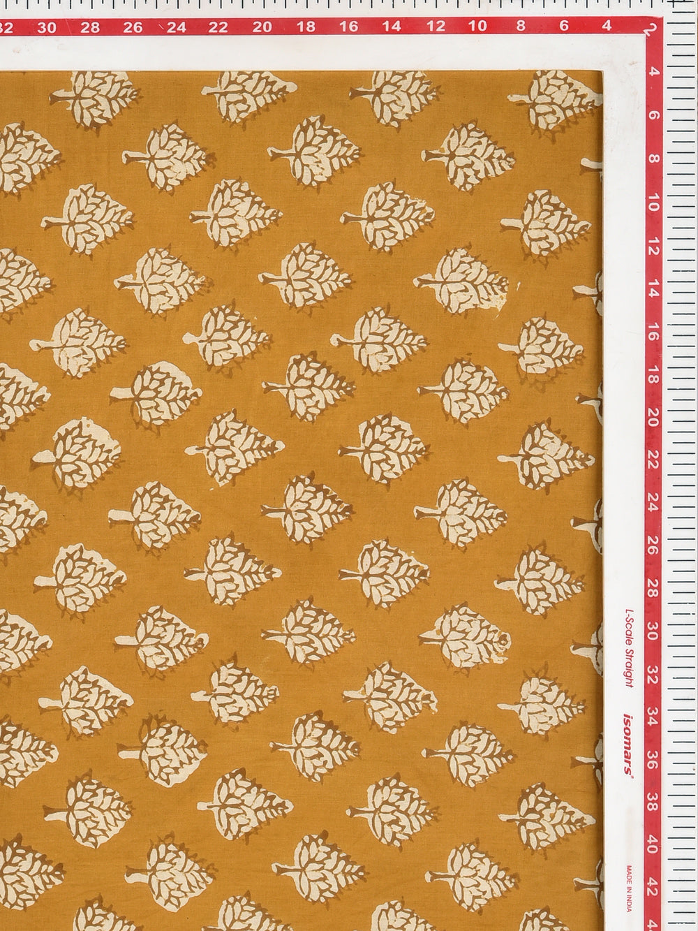Bagru Yellow Choti Kali Flower Booti Pattern Hand Block Printed Cotton Cambric Fabric