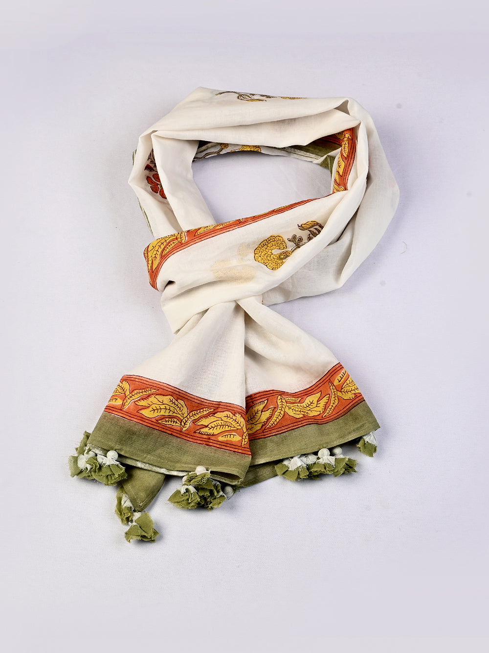 Anokhi Yellow Marigold Mughal Flower Cotton Mulmul Block Printed Stole