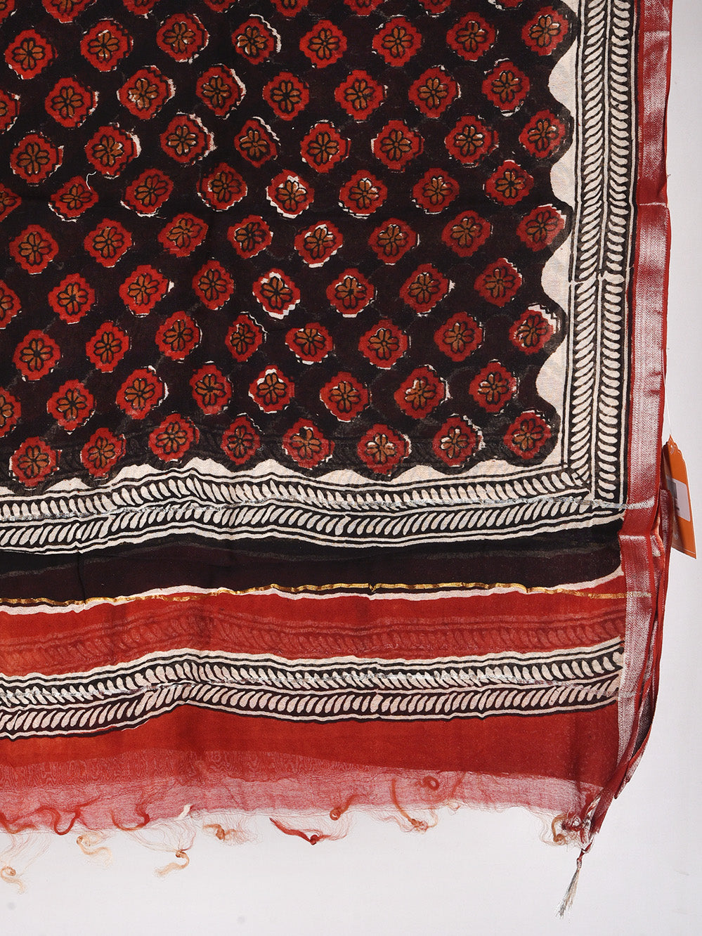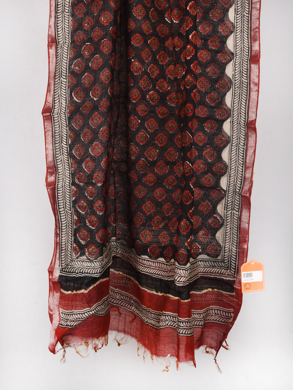 Bagru Black Hand Printed Silk Cotton Chanderi Dupatta