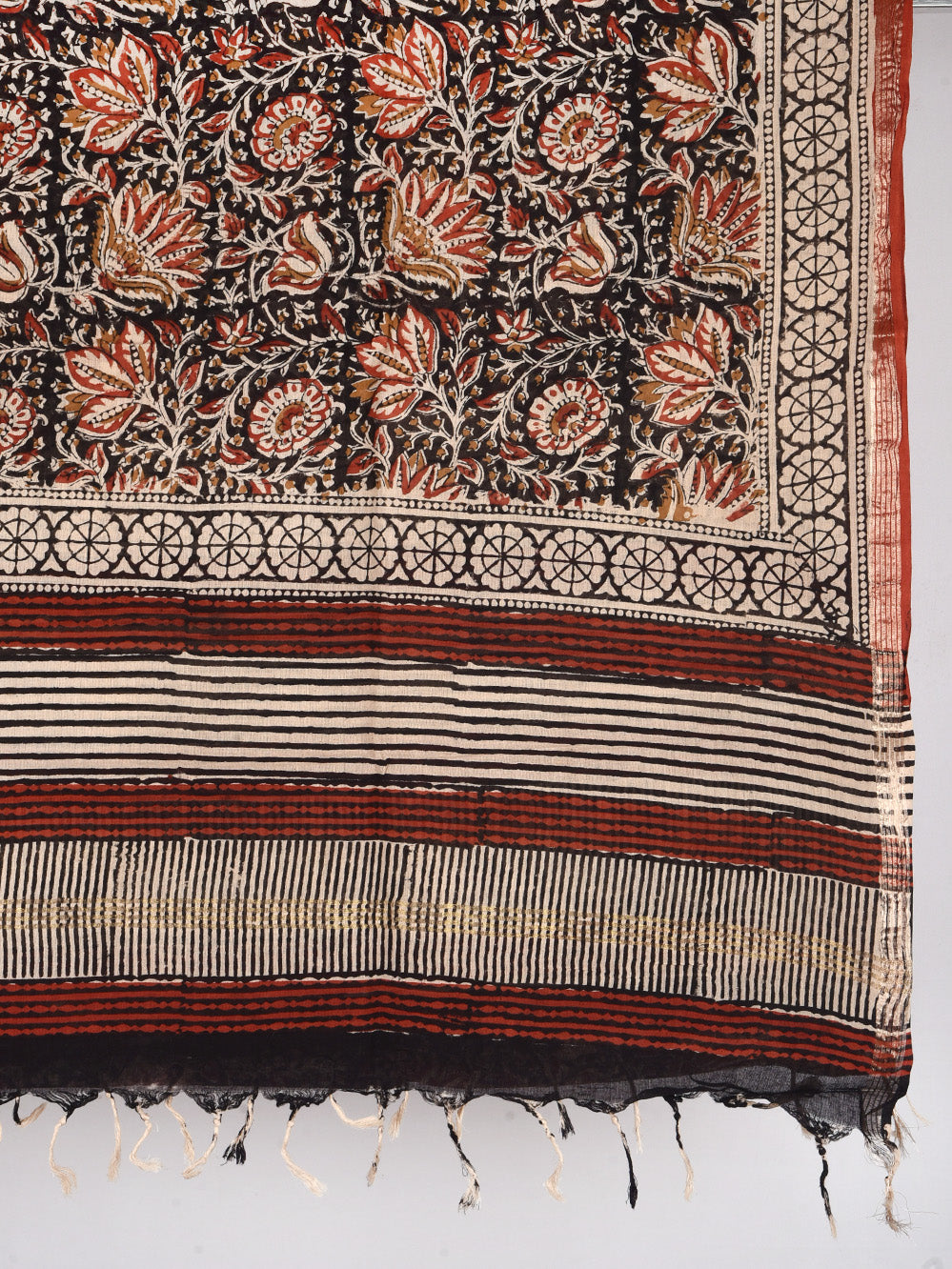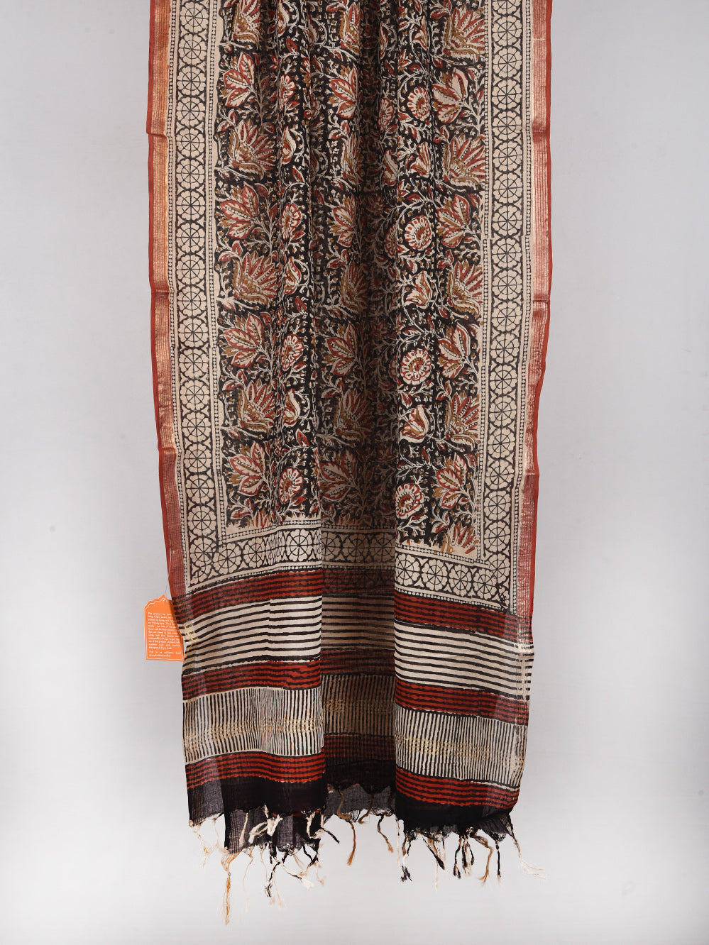 Bagru Black Hand Printed Silk Cotton Chanderi Dupatta