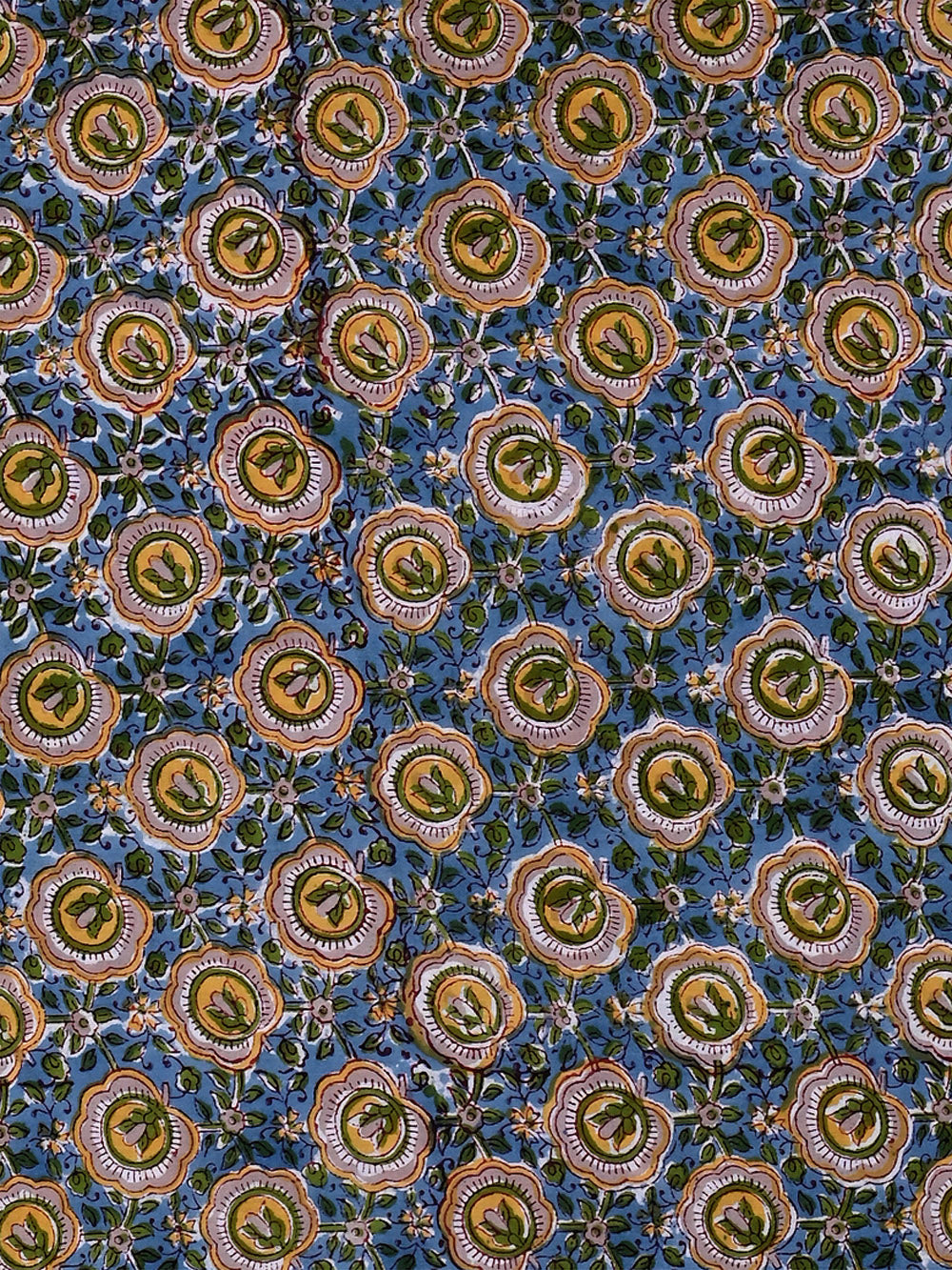 Blue Anokhi Flower Seed Forage Pattern Cotton Cambric Sanganeri Rapid Fabric