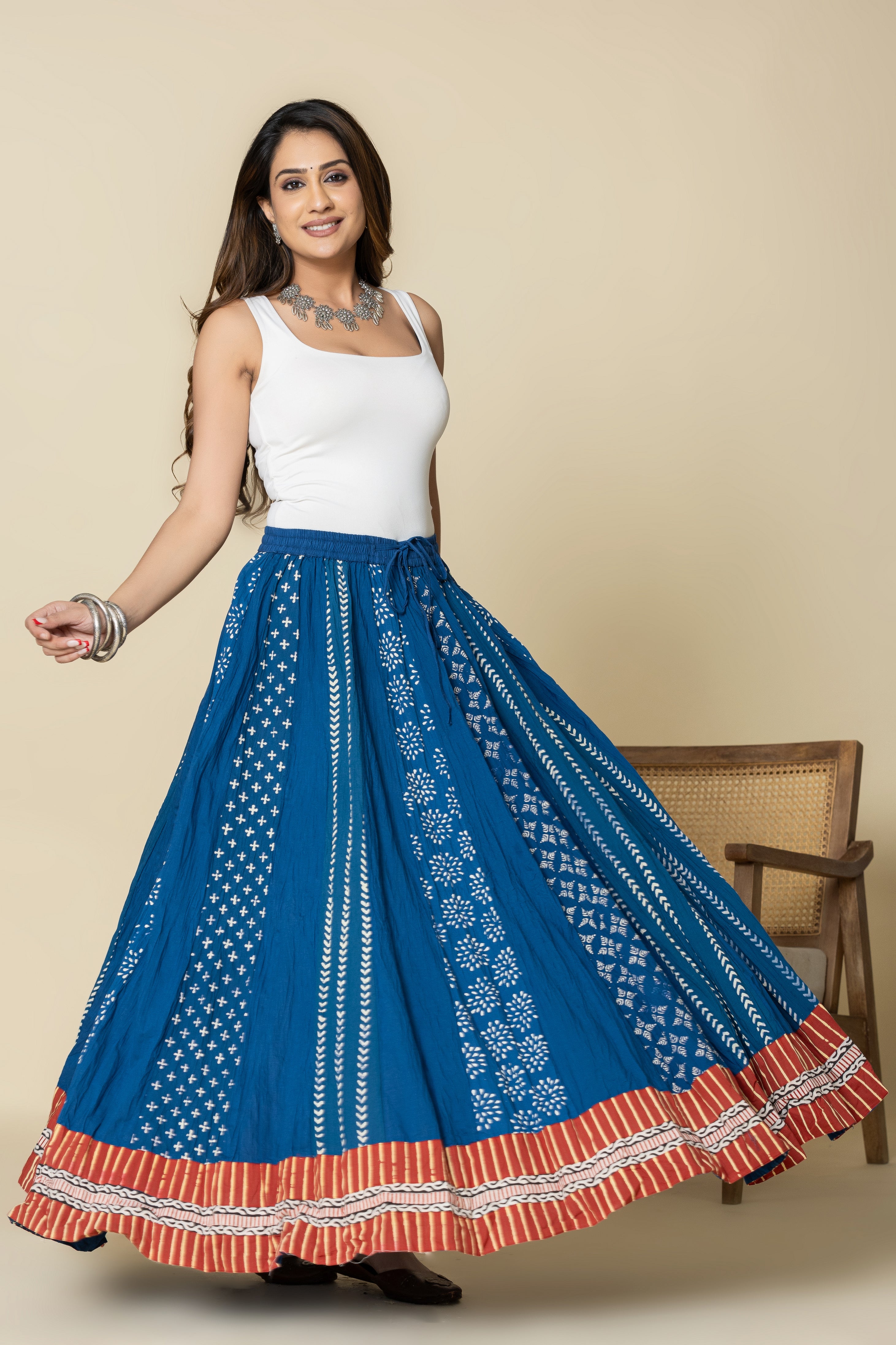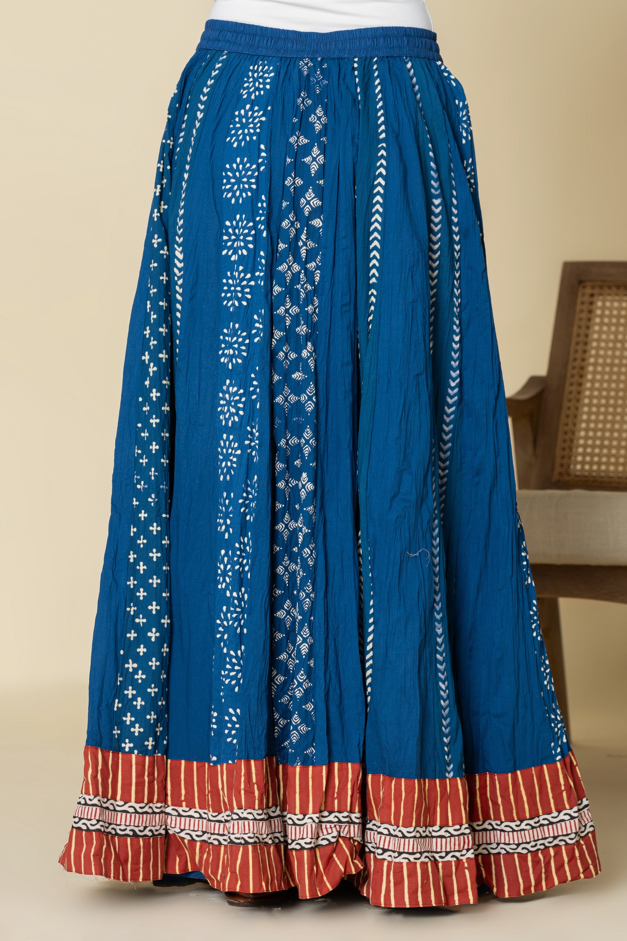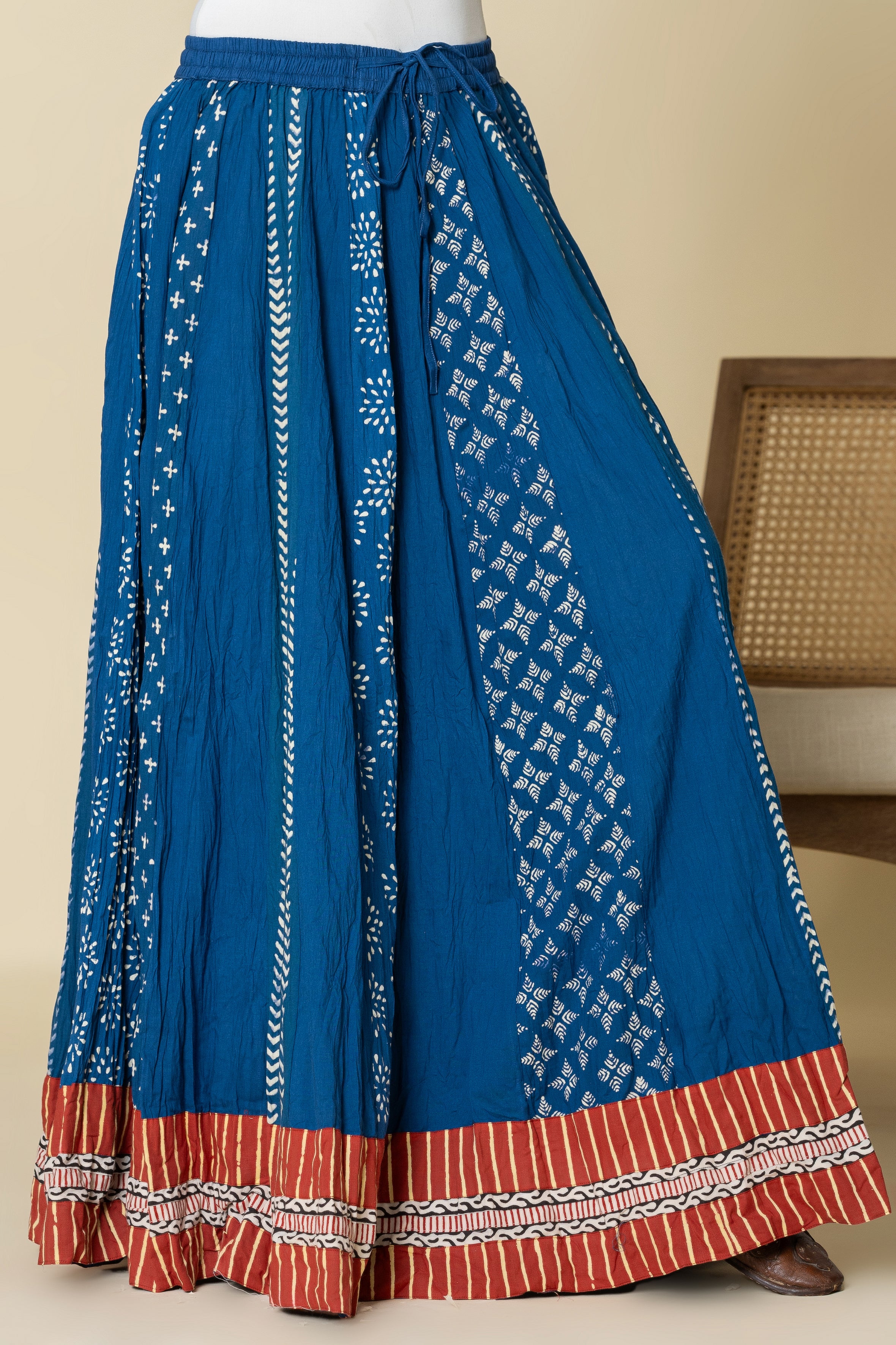 Blue Crinkled Cotton 28 Kali Kalidaar Skirt