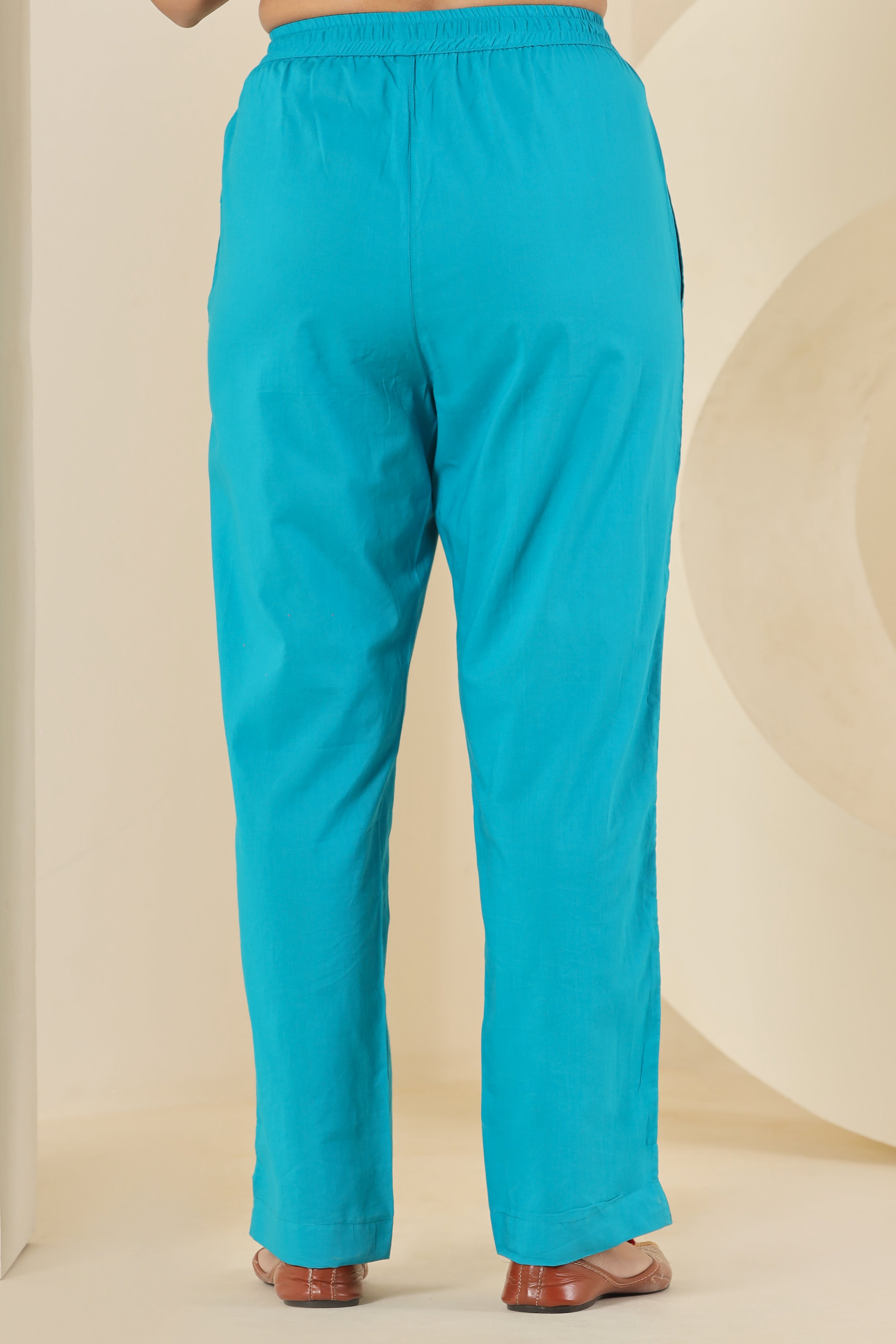Enjoy the ultimate comfort and style with these Lounge pants, crafted from Cotton Cambric Fabric that is gentle, airy, and smooth on your skin. These pants have a loose and straight fit that suits anybody. Whether you pair them with cozy t-shirts or elegant kurtis. They also feature 2 side pockets and an elasticated waistband with a drawstring for a custom fit. These are the pants that you will love to wear all day, every day. This product is handcrafted by skilled artisans for you and may have slight irregularities that are a natural outcome of the human involvement in the process.