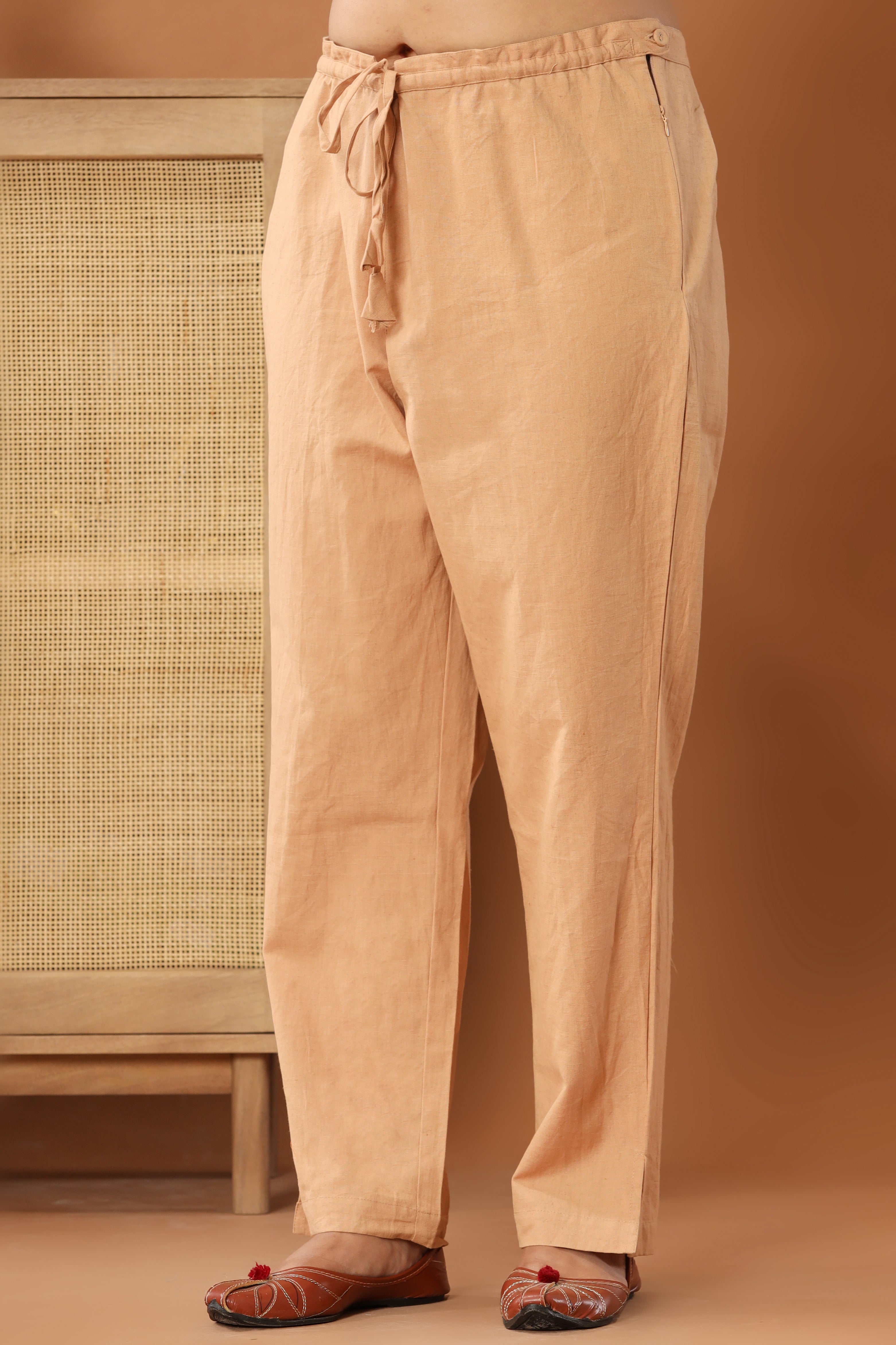 Light Beige Red Cotton Flex Straight Zipper Pants