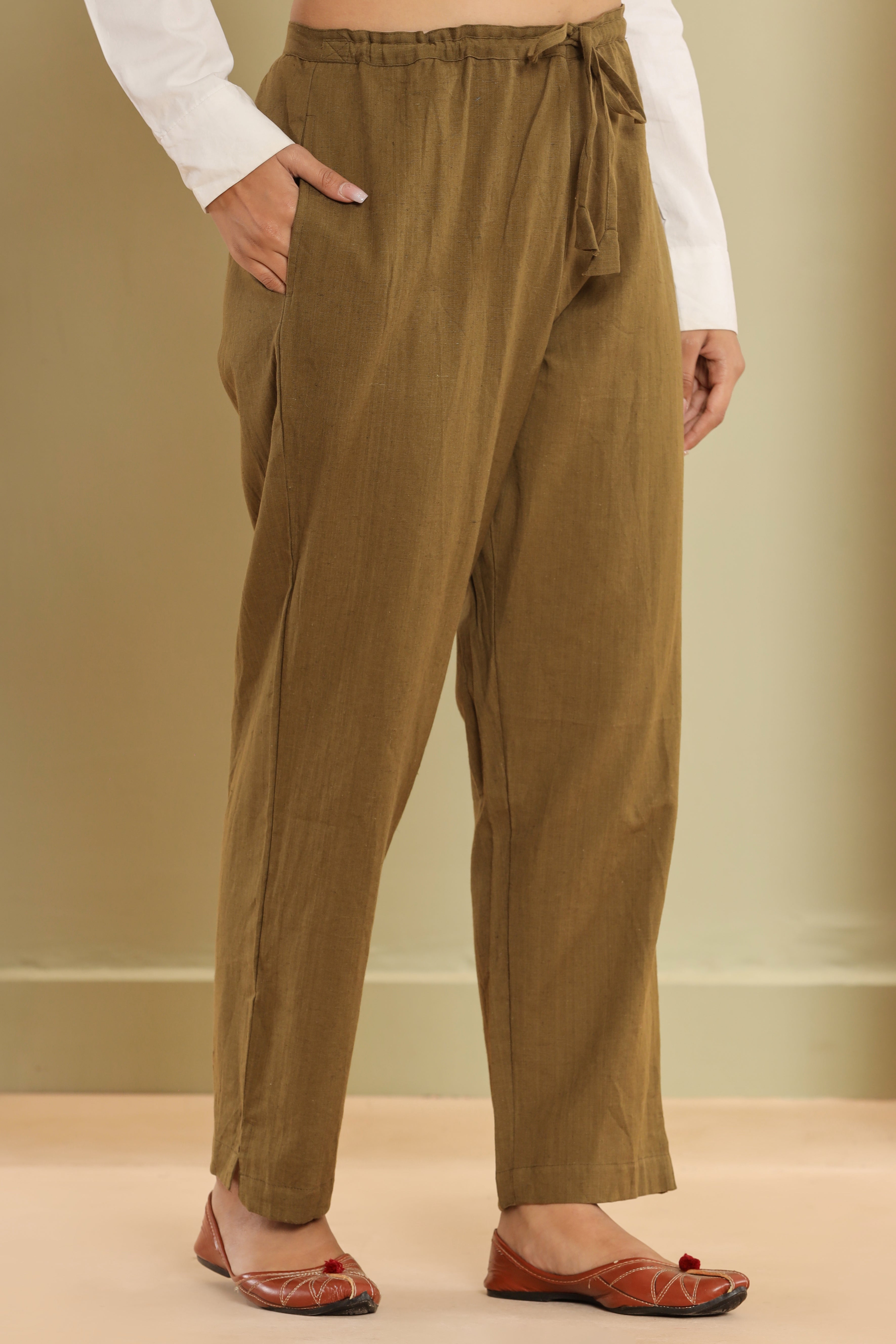 Mehndi Green Cotton Flex Straight Zipper Pants