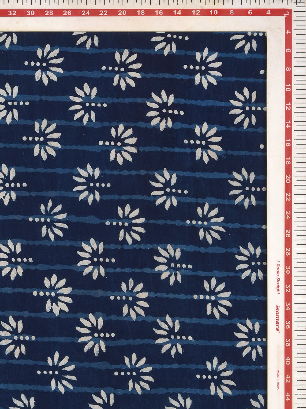 Daboo Indigo Pankhi Flower Cotton Cambric Fabric