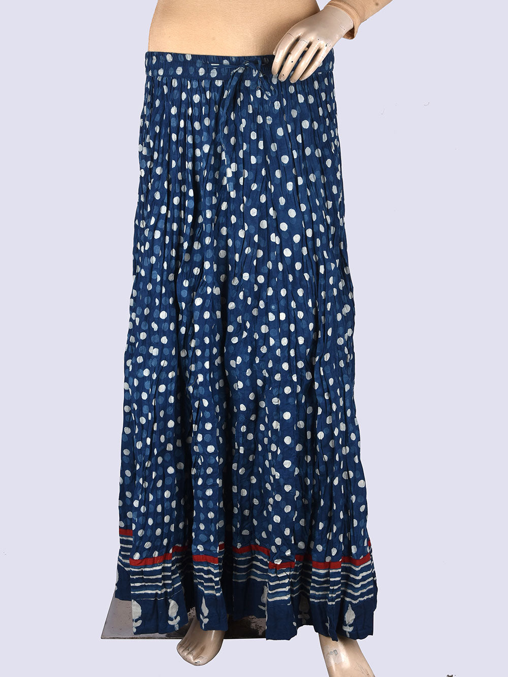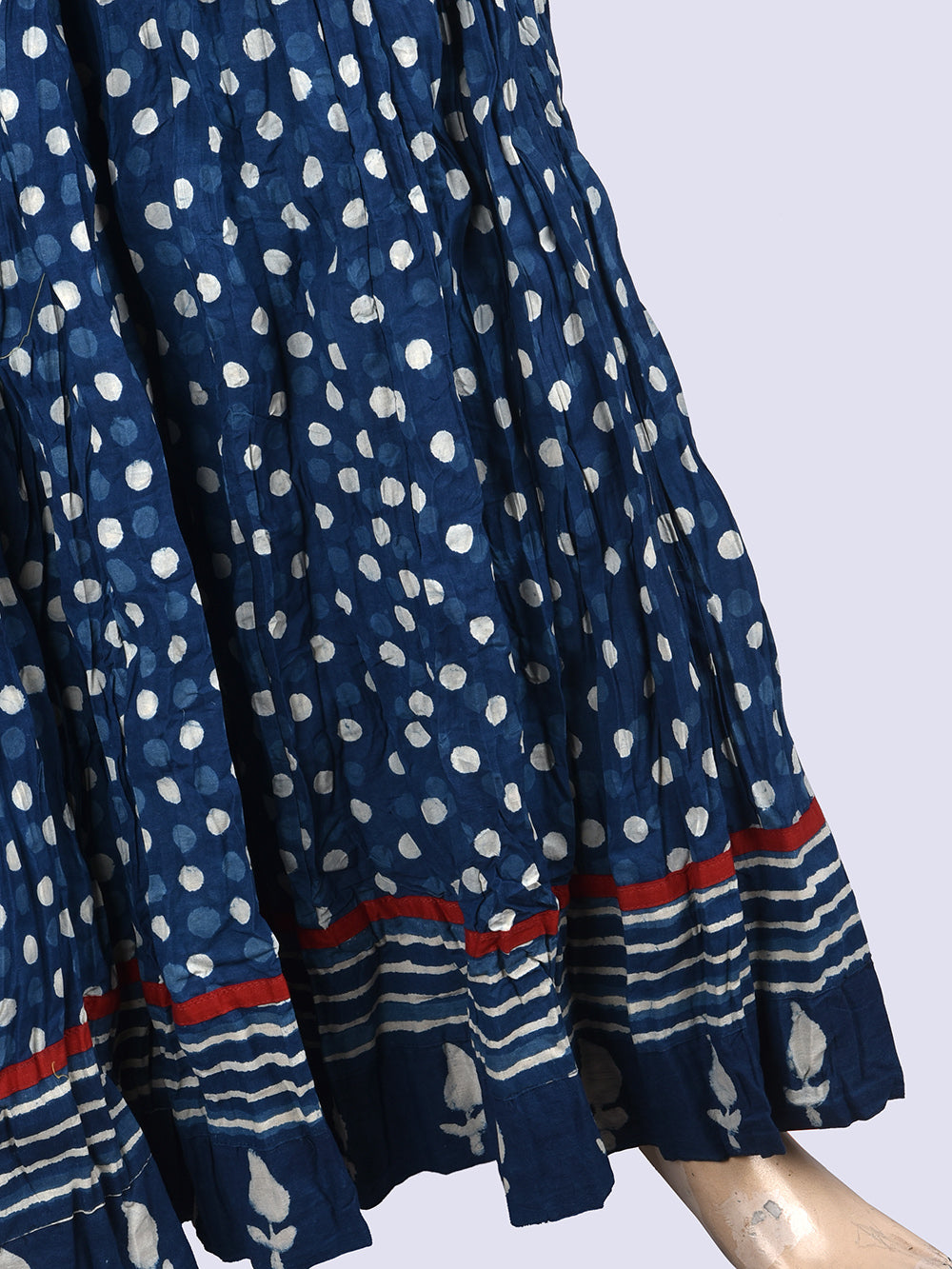 Daboo Indigo Polka Dots Hand Block Printed Crinkled Cotton 28 Kali Kalidaar Skirt