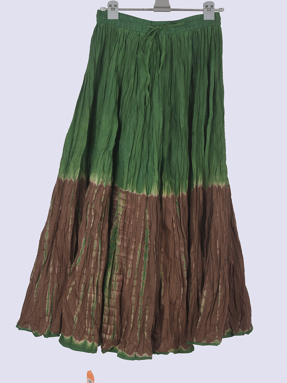 Green Tie & Dye Crinkled Cotton 28 Kali Kalidaar Skirt
