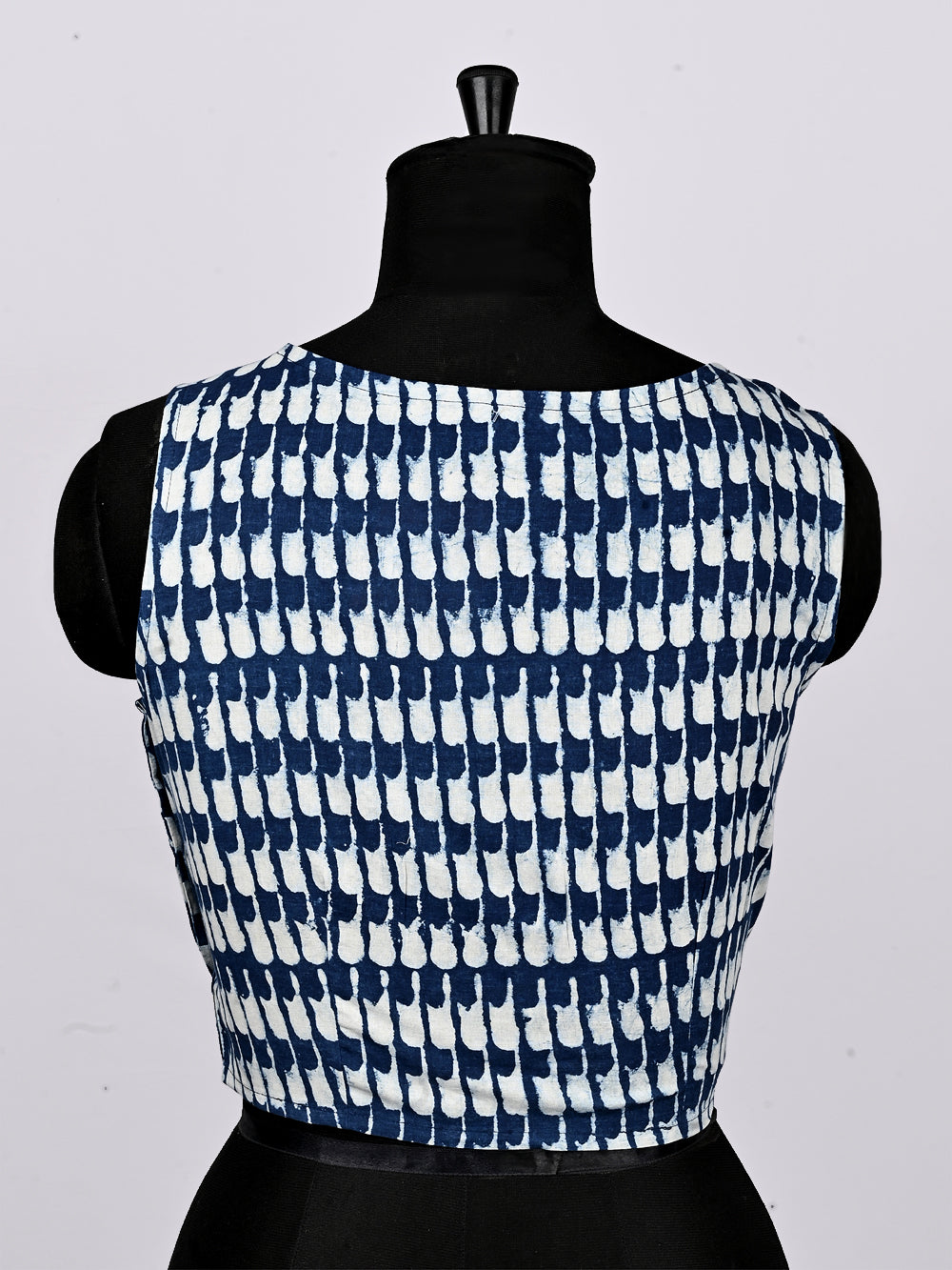 Indigo Blue Thumb Print Sleeveless Hand Block Printed Cotton Blouse