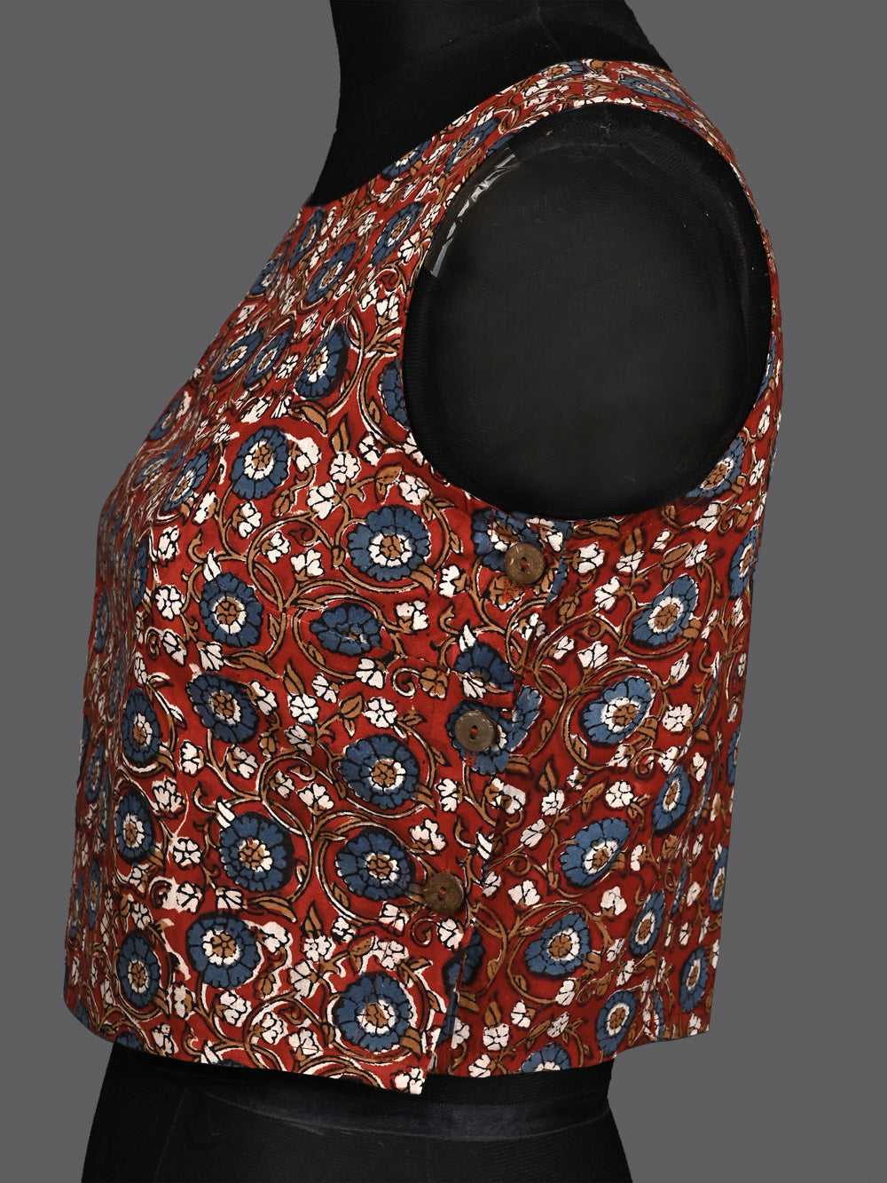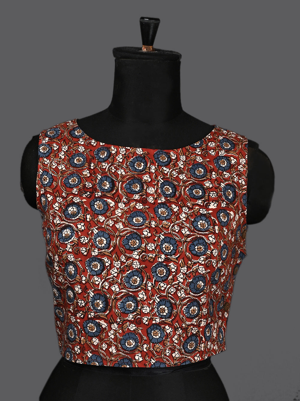 Kalamkari The Doodle Flower Sleeveless Hand Block Printed Cotton Blouse