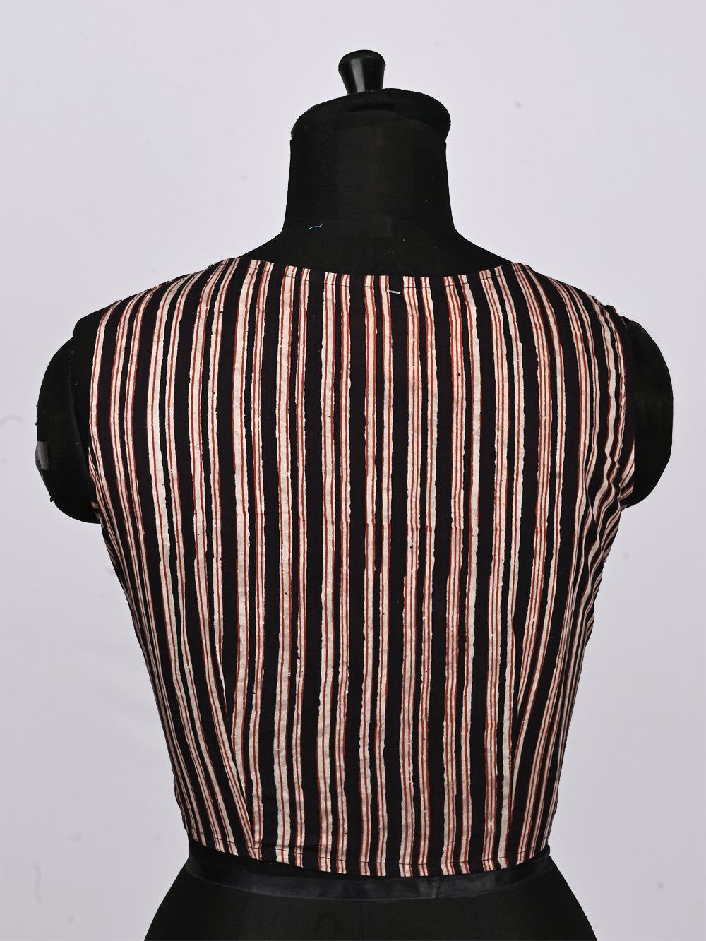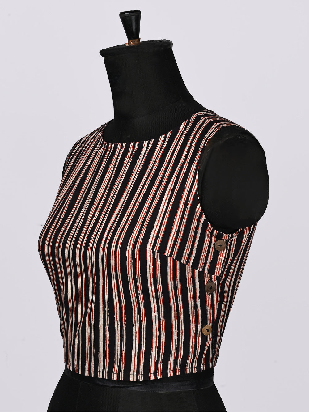 Natural Black Stripes Sleeveless Hand Block Printed Cotton Blouse