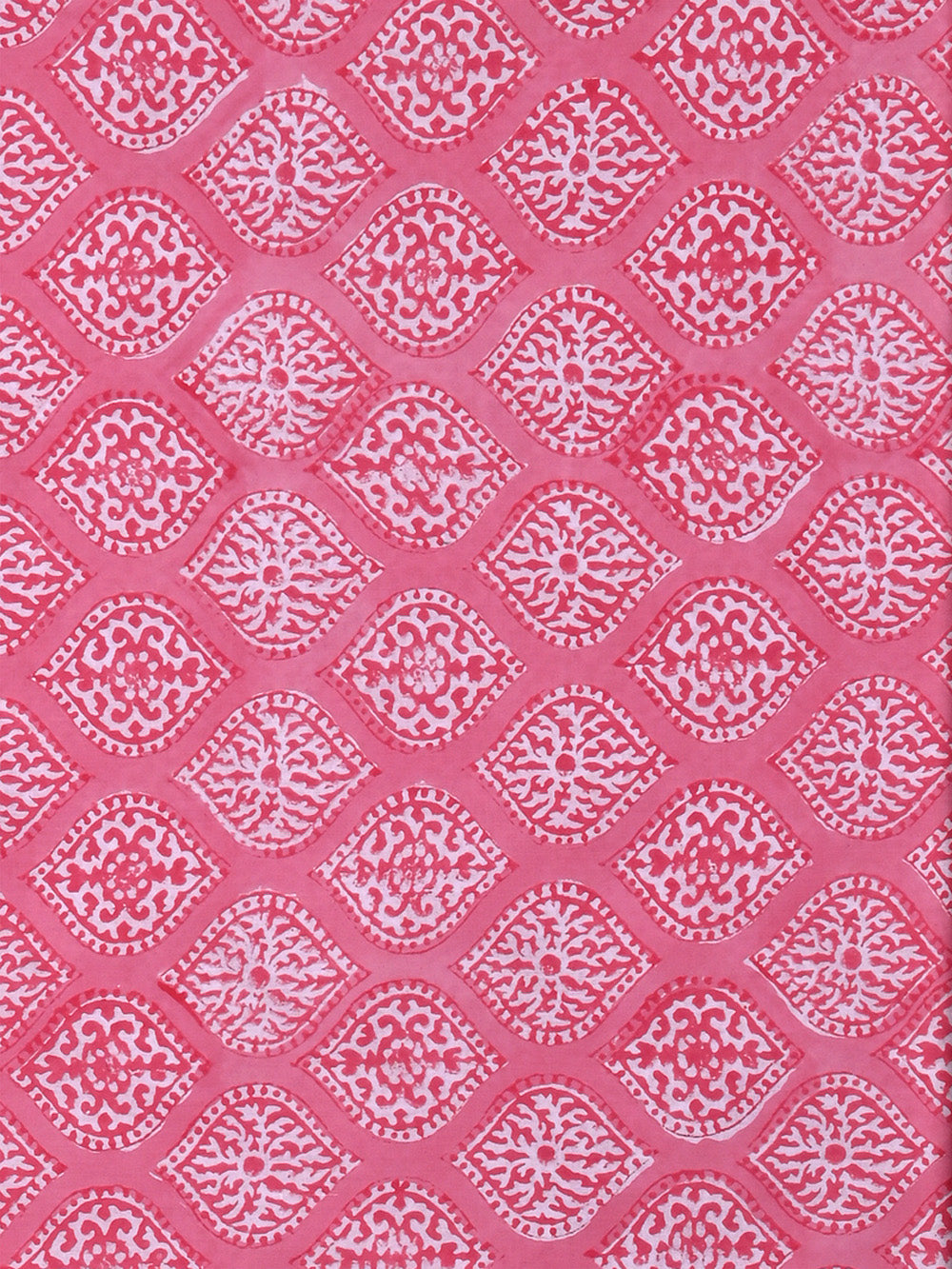 Pink Heritage Booti Stamp Motif Pattern Cotton Cambric Sanganeri Rapid Fabric