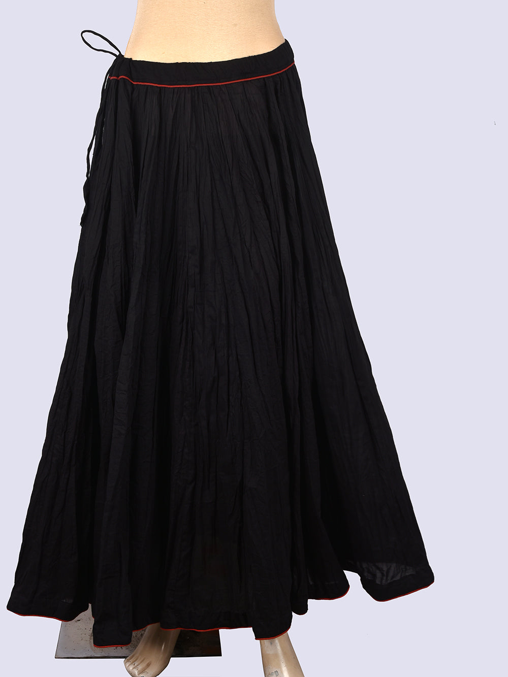 Plain Dyed Black Crinkled Cotton Mulmul 48 Kali Kalidaar Skirt