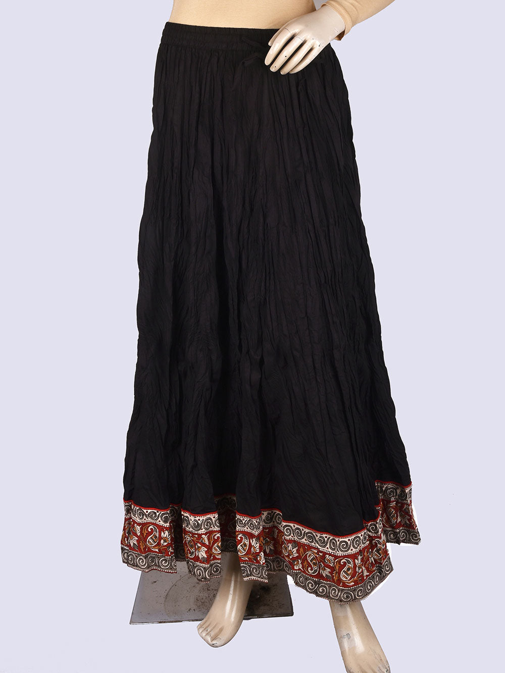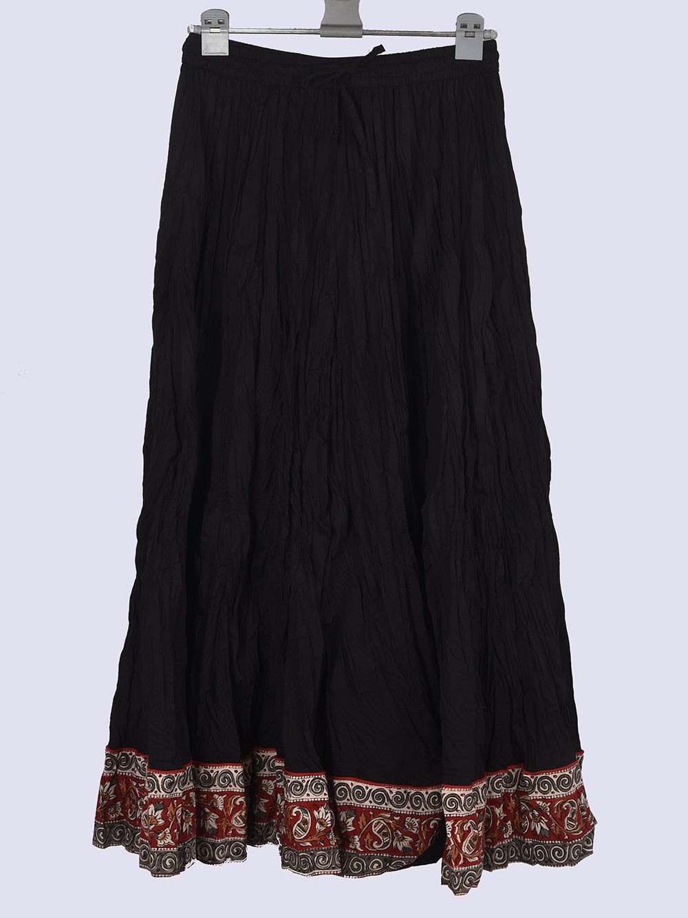 Plain Dyed Black with Kalamkari Border Crinkled Cotton 28 Kali Kalidaar Skirt