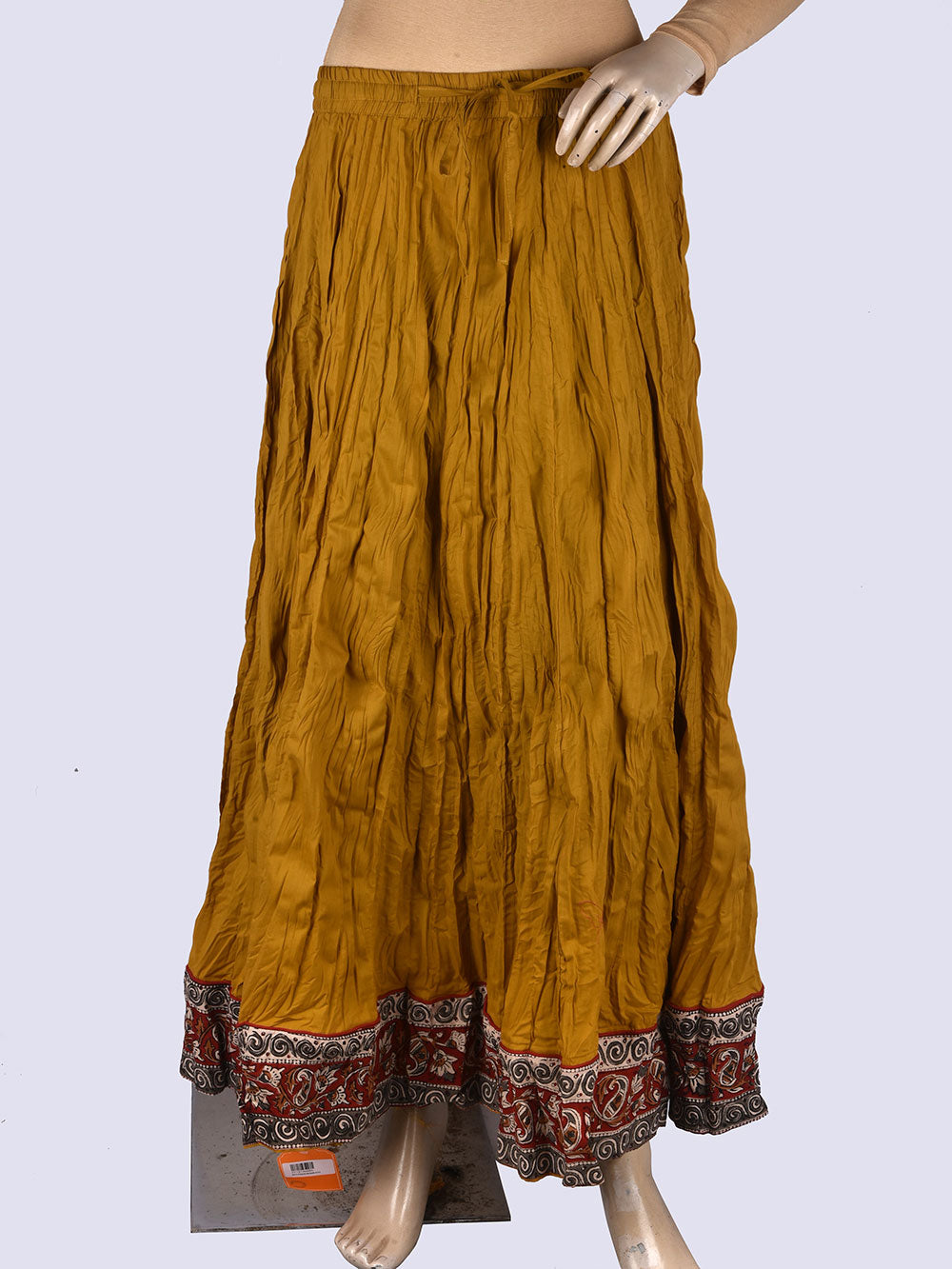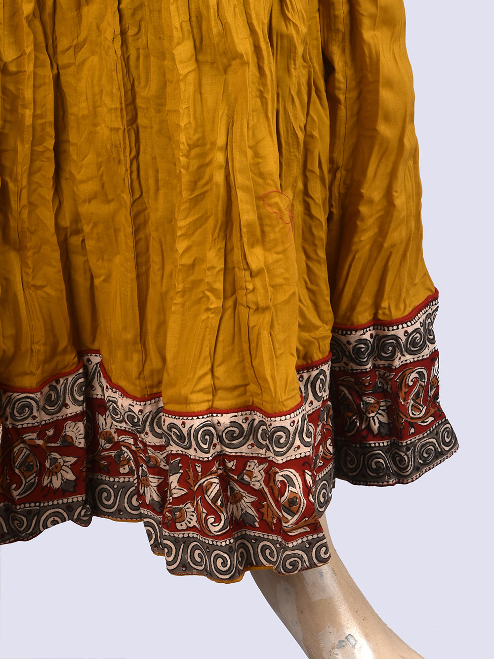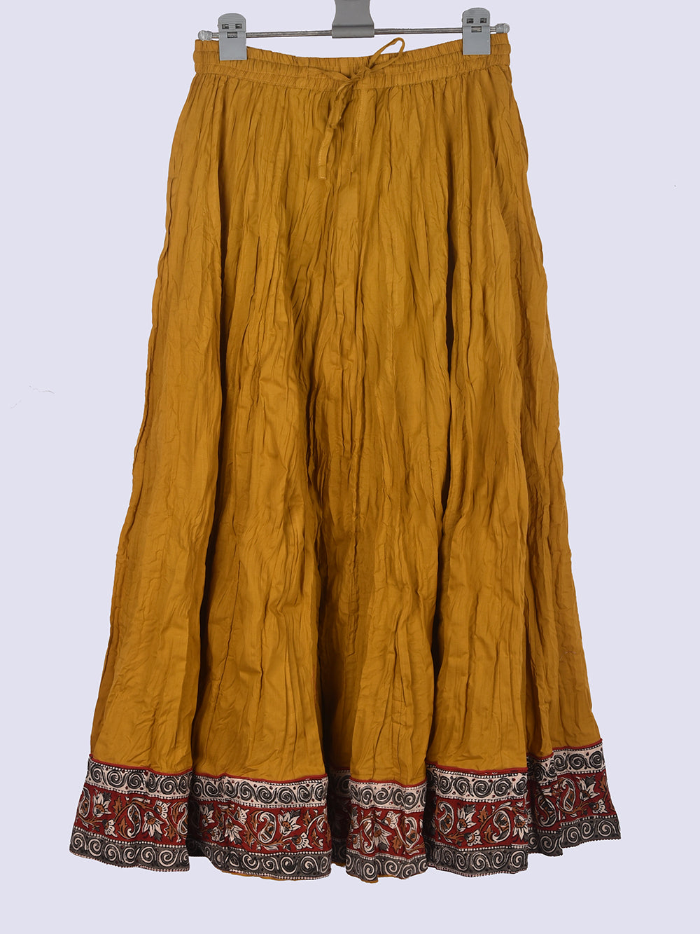 Plain Dyed Ochre Yellow with Kalamkari Border Crinkled Cotton 28 Kali Kalidaar Skirt