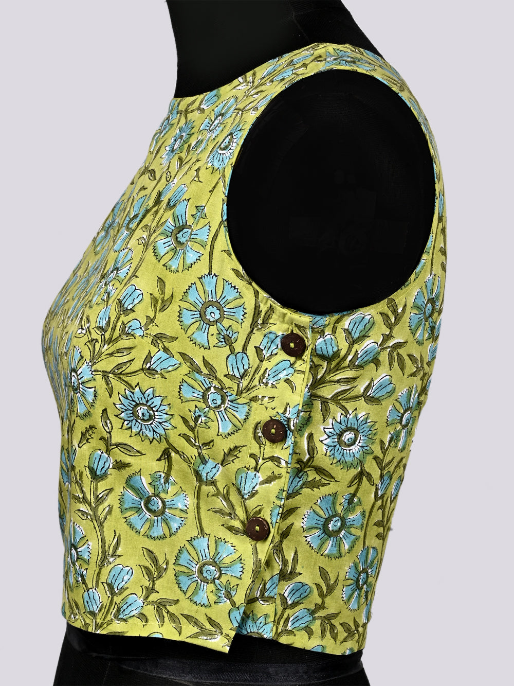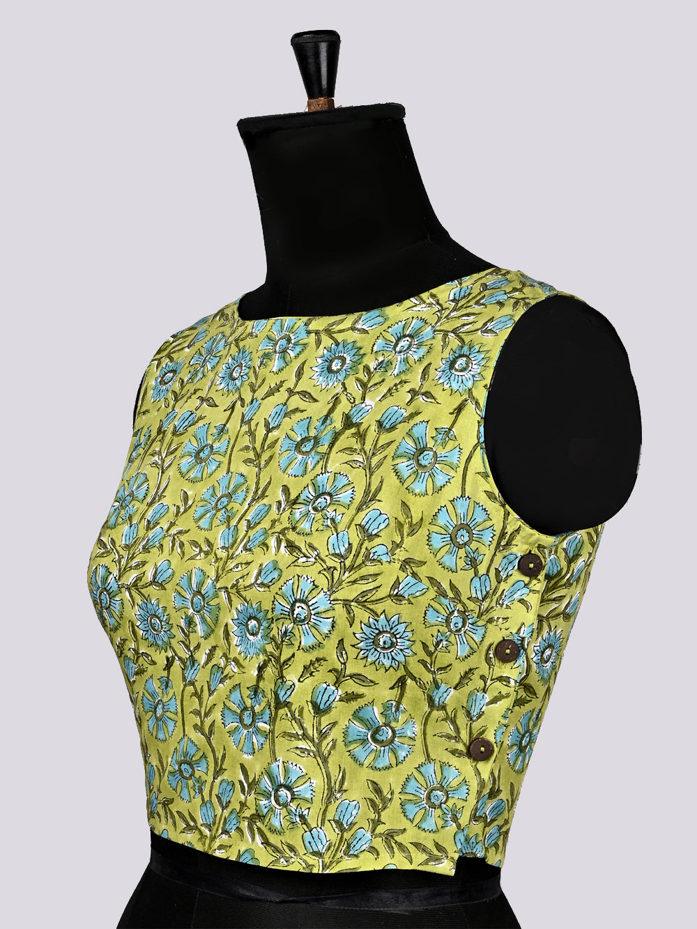 Sunny Forest Sleeveless Hand Block Printed Cotton Blouse