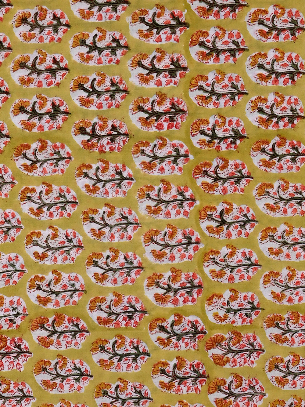 Yellow Flower Booti Plant Motif Cotton Cambric Sanganeri Block Printed Fabric
